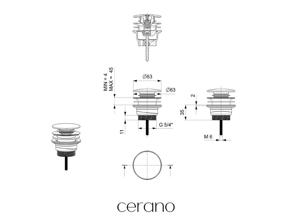 Výrobok je vybavený štandardným závitovým pripojením 5/4", ktoré zaisťuje kompatibilitu umývadlových výpustí a sifónov a zároveň uľahčuje ich vzájomné pripojenie.
