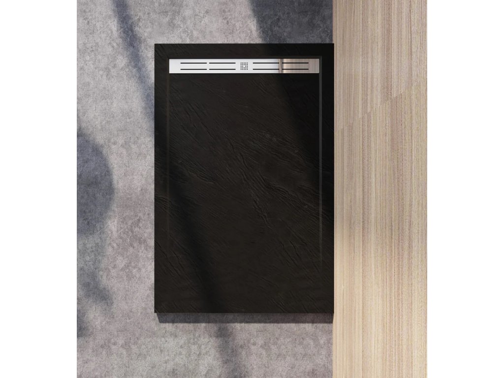 CERANO - Sprchová vanička obdĺžniková Docia - SMC/minerálny kompozit - sifón + nerezový kryt - štruktúrovaná čierna matná - 120x80 cm