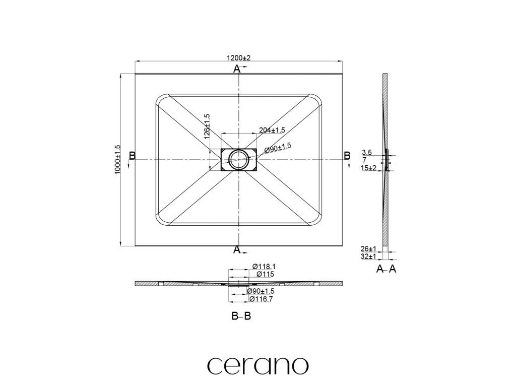 CERANO - Sprchová vanička obdĺžniková FlexiCut - SMC/minerálny kompozit - upraviteľná - biela mätná - 120x100x3 cm