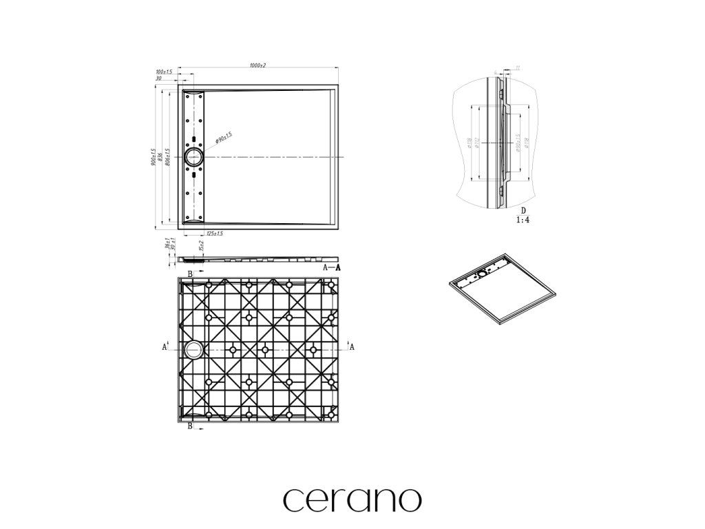 CERANO - Sprchová vanička obdĺžniková Lugo - SMC/minerálny kompozit - čierna matná - 100x90x3 cm