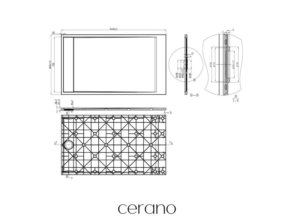 CERANO - Sprchová vanička obdĺžniková Lugo - SMC/minerálny kompozit - čierna matná - 140x80x3 cm