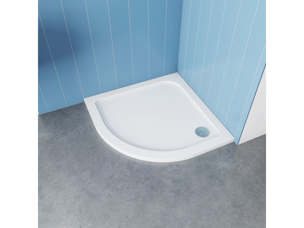 CERANO - Sprchová vanička z liateho mramoru štvrťkruhová Piato - biela lesklá- 90x90x3 cm