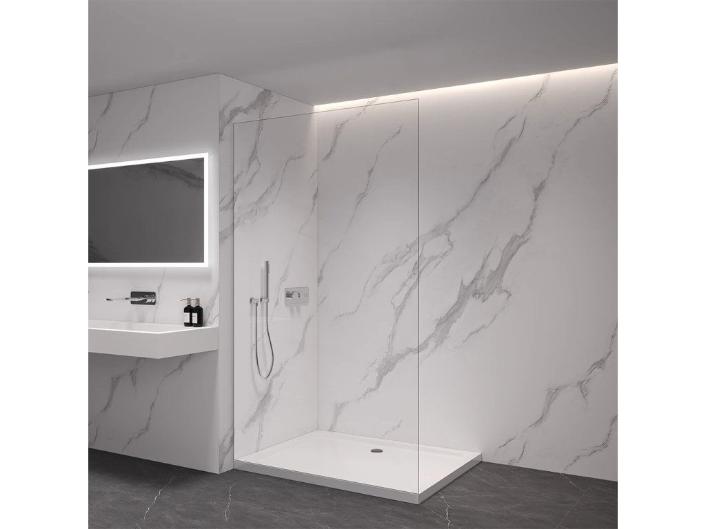 Vďaka premyslenej konštrukcii je sklo uchytené skryto do profilov, ktoré je možné zapustiť úplne alebo čiastočne (až 14 mm do obkladov či dlažby). Bez rušivých vzpier tak vzniká čisté, elegantné riešenie, ktoré podčiarkne moderný vzhľad kúpeľne a dodá priestoru maximálnu vizuálnu ľahkosť.