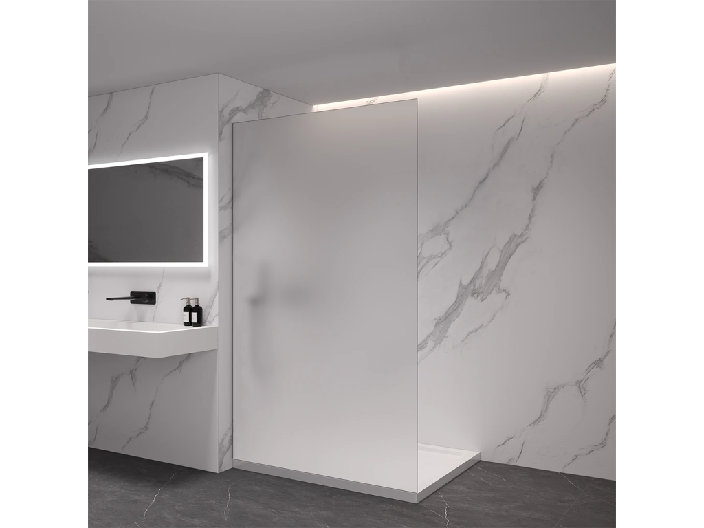 Vďaka premyslenej konštrukcii je sklo uchytené skryto do profilov, ktoré je možné zapustiť úplne alebo čiastočne (až 14 mm do obkladov či dlažby). Bez rušivých vzpier tak vzniká čisté, elegantné riešenie, ktoré podčiarkne moderný vzhľad kúpeľne a dodá priestoru maximálnu vizuálnu ľahkosť.