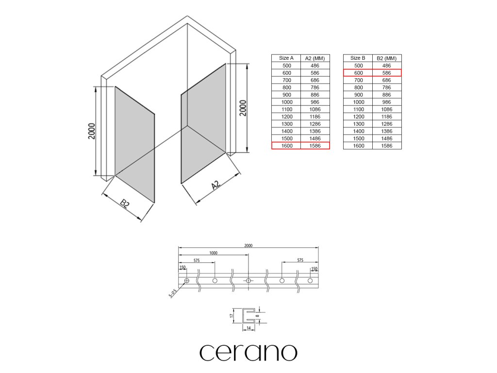 Niektoré zásteny značky Cerano je možné kombinovať s dverami z inej série, ale vo všeobecnosti to neodporúčame.