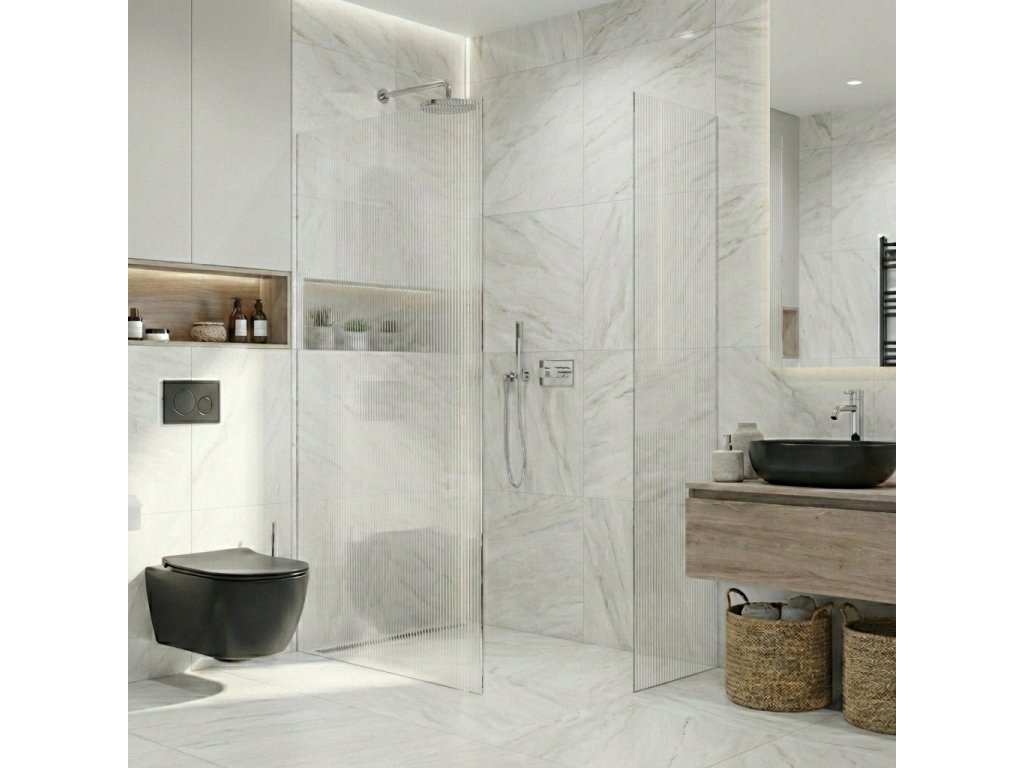 Vďaka premyslenej konštrukcii je sklo uchytené skryto do profilov, ktoré je možné zapustiť úplne alebo čiastočne (až 14 mm do obkladov či dlažby). Bez rušivých vzpier tak vzniká čisté, elegantné riešenie, ktoré podčiarkne moderný vzhľad kúpeľne a dodá priestoru maximálnu vizuálnu ľahkosť.