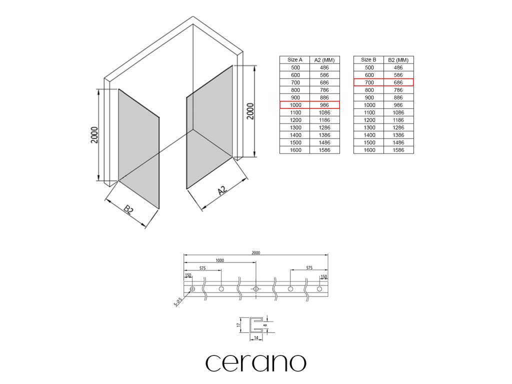 V rámci tejto série ponúkame širokú škálu rozmerov , aby sme uspokojili rôzne potreby našich zákazníkov. Všetky sprchové kúty, dvere a zásteny značky Cerano sú plne kompatibilné so sprchovými vaničkami Cerano v rovnakých rozmeroch, čo zaisťuje bezproblémovú inštaláciu a dokonalé zladenie. Sprchovací kút je možné navyše inštalovať flexibilne – buď na zodpovedajúcu sprchovú vaničku , alebo priamo na podlahu podľa vašich preferencií a možností kúpeľne.