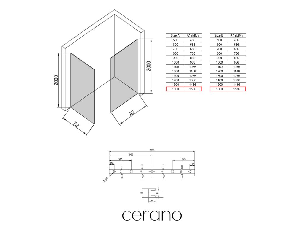 Niektoré zásteny značky Cerano je možné kombinovať s dverami z inej série, ale vo všeobecnosti to neodporúčame.