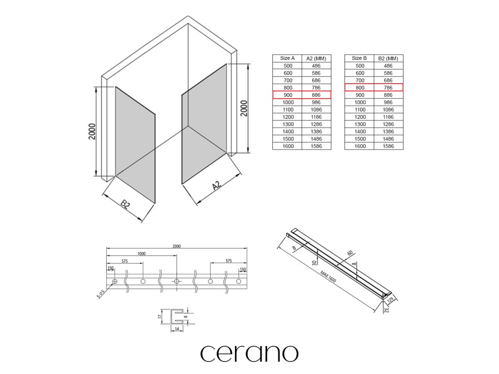 V rámci tejto série ponúkame širokú škálu rozmerov , aby sme uspokojili rôzne potreby našich zákazníkov. Všetky sprchové kúty, dvere a zásteny značky Cerano sú plne kompatibilné so sprchovými vaničkami Cerano v rovnakých rozmeroch, čo zaisťuje bezproblémovú inštaláciu a dokonalé zladenie. Sprchovací kút je možné navyše inštalovať flexibilne – buď na zodpovedajúcu sprchovú vaničku , alebo priamo na podlahu podľa vašich preferencií a možností kúpeľne.