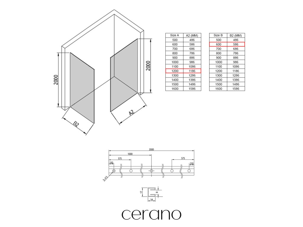 Niektoré zásteny značky Cerano je možné kombinovať s dverami z inej série, ale vo všeobecnosti to neodporúčame.