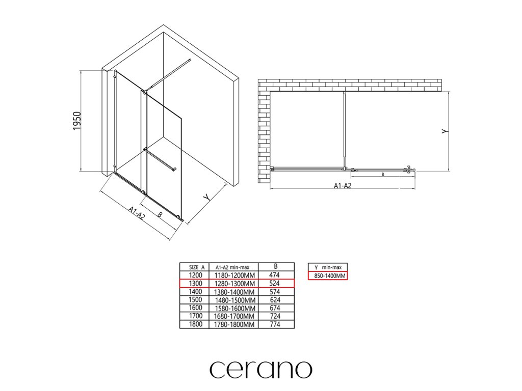CERANO - Sprchová zástena Walk-in Medin Ľ/P - 8 mm - chróm, transparentné sklo - 130x195 cm - dvojdielna posuvná