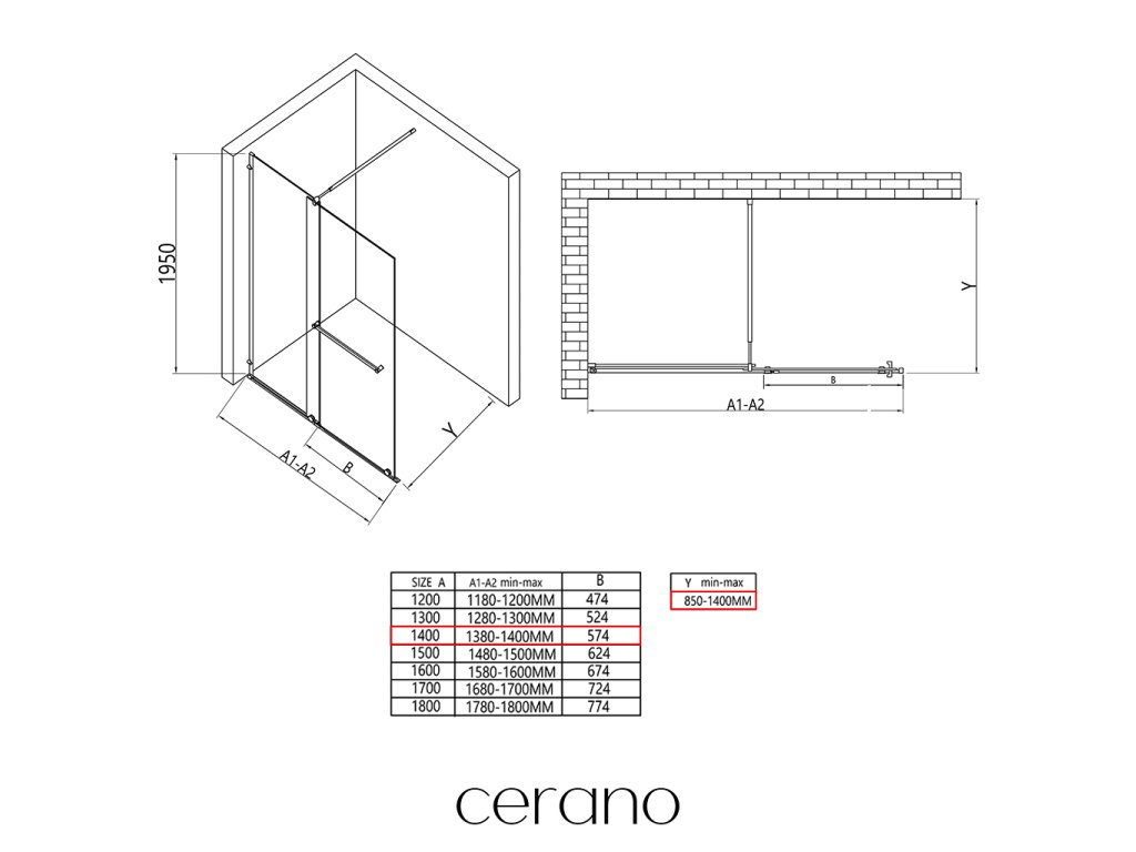 CERANO - Sprchová zástena Walk-in Medin Ľ/P - 8 mm - chróm, transparentné sklo - 140x195 cm - dvojdielna posuvná