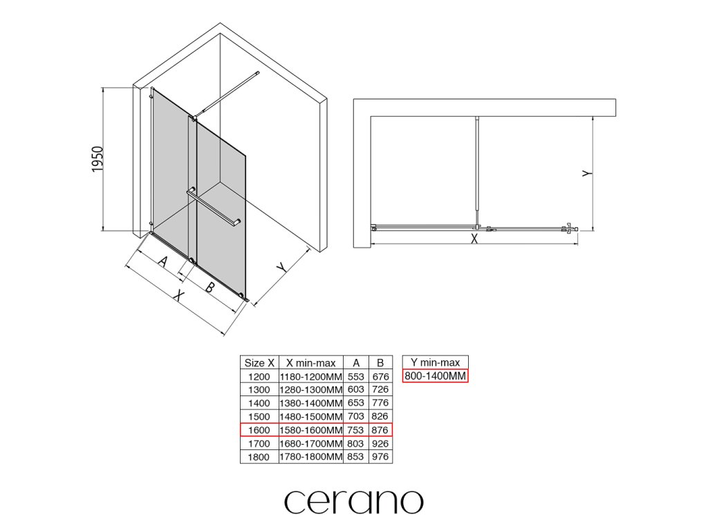CERANO - Sprchová zástena Walk-in Medin Ľ/P - 8 mm - chróm, transparentné sklo - 160x195 cm - dvojdielna posuvná