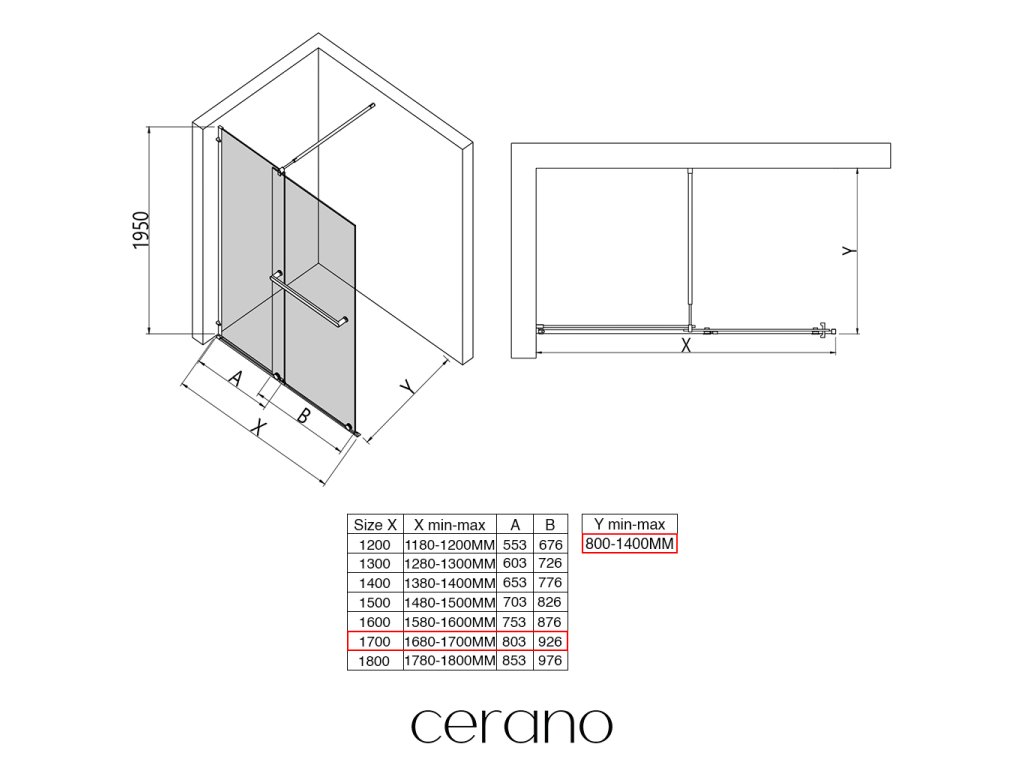 CERANO - Sprchová zástena Walk-in Medin Ľ/P - 8 mm - čierna matná, transparentné sklo - 170x195 cm - dvojdielna posuvná