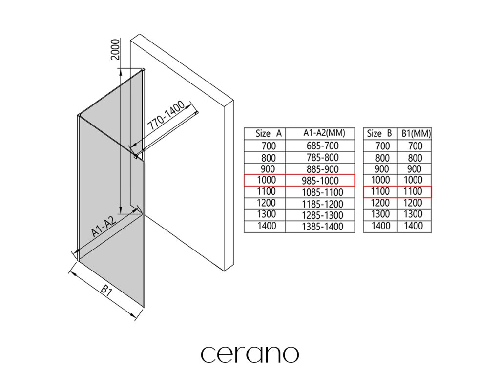 V rámci tejto série ponúkame širokú škálu rozmerov, aby sme uspokojili rôzne potreby našich zákazníkov. Všetky sprchové kúty, dvere a zásteny značky Cerano sú plne kompatibilné so sprchovými vaničkami Cerano v rovnakých rozmeroch, čo zaisťuje bezproblémovú inštaláciu a dokonalé zladenie. Sprchovací kút je možné navyše inštalovať flexibilne – buď na zodpovedajúcu sprchovú vaničku, alebo priamo na podlahu podľa vašich preferencií a možností kúpeľne.