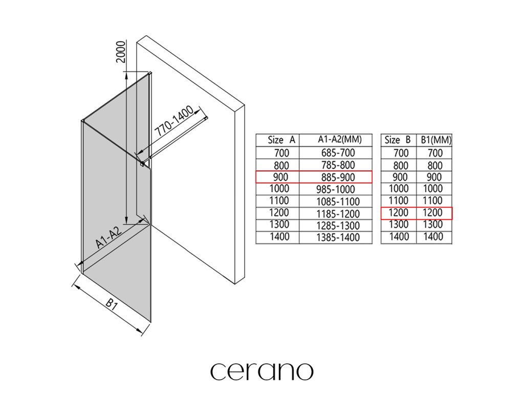V rámci tejto série ponúkame širokú škálu rozmerov, aby sme uspokojili rôzne potreby našich zákazníkov. Všetky sprchové kúty, dvere a zásteny značky Cerano sú plne kompatibilné so sprchovými vaničkami Cerano v rovnakých rozmeroch, čo zaisťuje bezproblémovú inštaláciu a dokonalé zladenie. Sprchovací kút je možné navyše inštalovať flexibilne – buď na zodpovedajúcu sprchovú vaničku, alebo priamo na podlahu podľa vašich preferencií a možností kúpeľne.