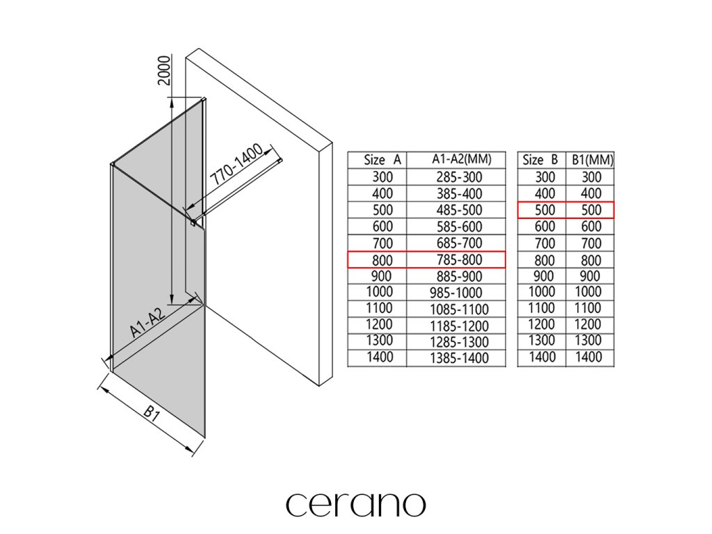 V rámci tejto série ponúkame širokú škálu rozmerov, aby sme uspokojili rôzne potreby našich zákazníkov. Všetky sprchové kúty, dvere a zásteny značky Cerano sú plne kompatibilné so sprchovými vaničkami Cerano v rovnakých rozmeroch, čo zaisťuje bezproblémovú inštaláciu a dokonalé zladenie. Sprchovací kút je možné navyše inštalovať flexibilne – buď na zodpovedajúcu sprchovú vaničku, alebo priamo na podlahu podľa vašich preferencií a možností kúpeľne.