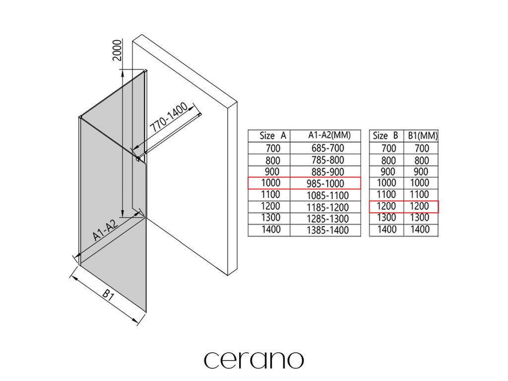 V rámci tejto série ponúkame širokú škálu rozmerov, aby sme uspokojili rôzne potreby našich zákazníkov. Všetky sprchové kúty, dvere a zásteny značky Cerano sú plne kompatibilné so sprchovými vaničkami Cerano v rovnakých rozmeroch, čo zaisťuje bezproblémovú inštaláciu a dokonalé zladenie. Sprchovací kút je možné navyše inštalovať flexibilne – buď na zodpovedajúcu sprchovú vaničku, alebo priamo na podlahu podľa vašich preferencií a možností kúpeľne.