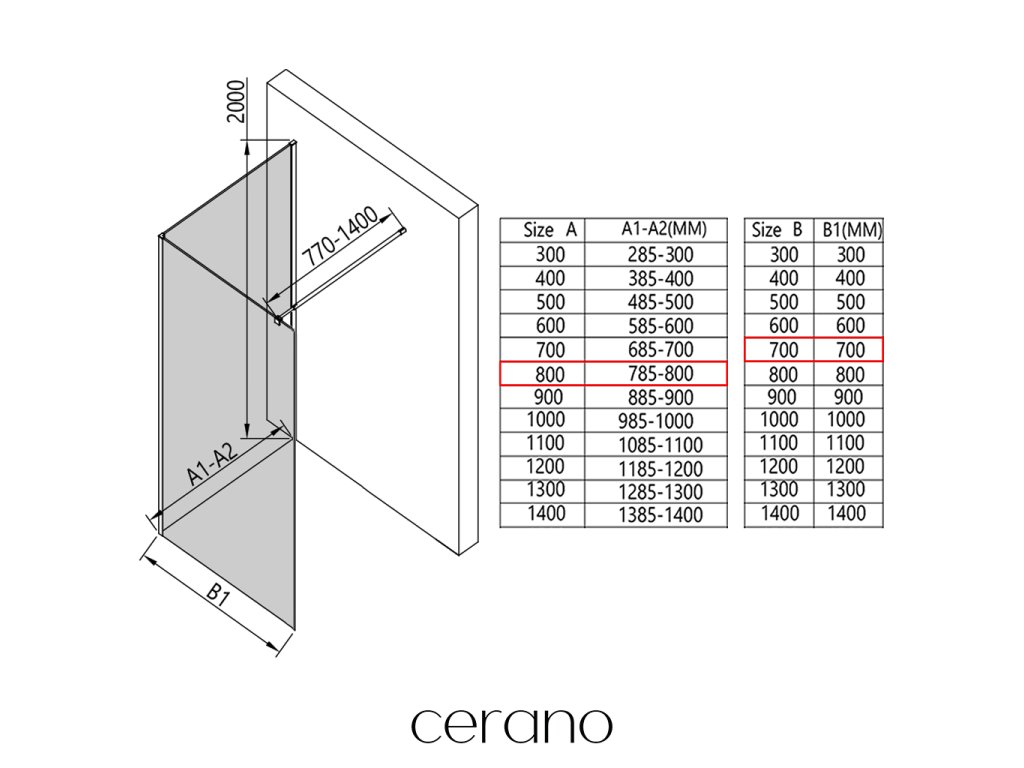 V rámci tejto série ponúkame širokú škálu rozmerov, aby sme uspokojili rôzne potreby našich zákazníkov. Všetky sprchové kúty, dvere a zásteny značky Cerano sú plne kompatibilné so sprchovými vaničkami Cerano v rovnakých rozmeroch, čo zaisťuje bezproblémovú inštaláciu a dokonalé zladenie. Sprchovací kút je možné navyše inštalovať flexibilne – buď na zodpovedajúcu sprchovú vaničku, alebo priamo na podlahu podľa vašich preferencií a možností kúpeľne.