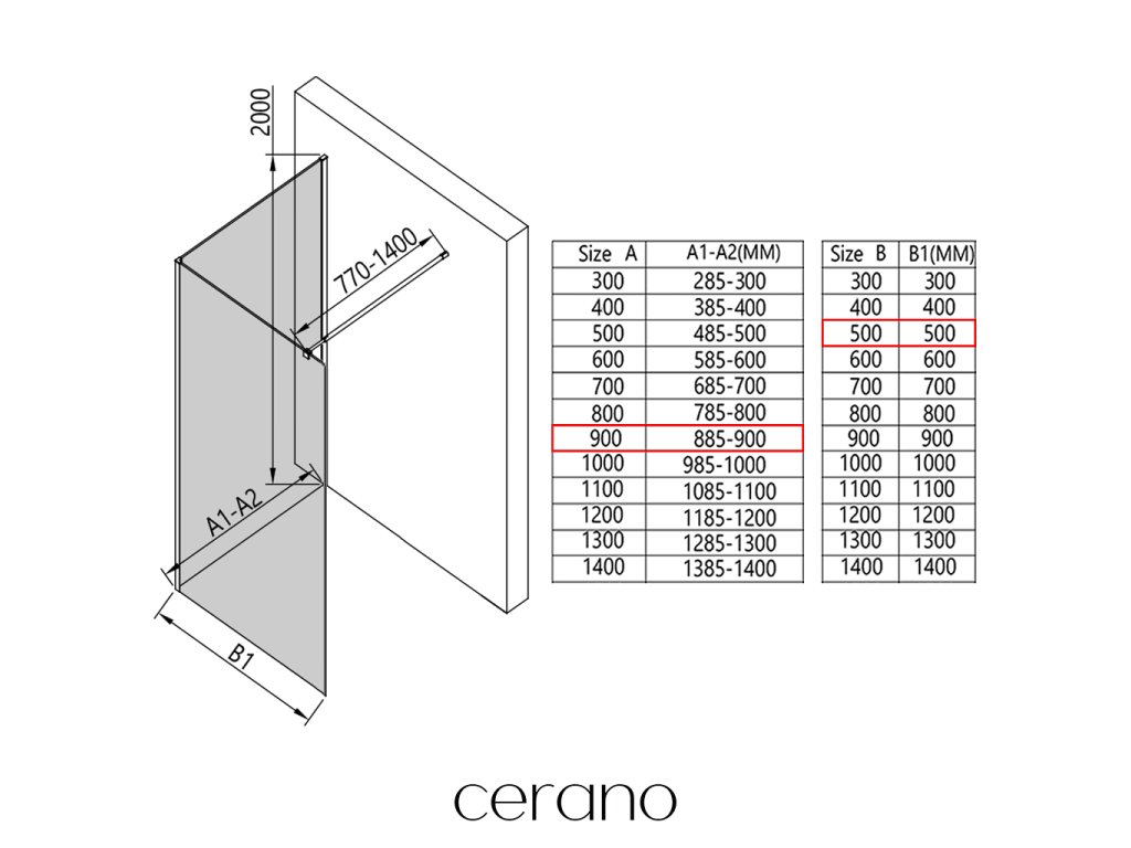 V rámci tejto série ponúkame širokú škálu rozmerov, aby sme uspokojili rôzne potreby našich zákazníkov. Všetky sprchové kúty, dvere a zásteny značky Cerano sú plne kompatibilné so sprchovými vaničkami Cerano v rovnakých rozmeroch, čo zaisťuje bezproblémovú inštaláciu a dokonalé zladenie. Sprchovací kút je možné navyše inštalovať flexibilne – buď na zodpovedajúcu sprchovú vaničku, alebo priamo na podlahu podľa vašich preferencií a možností kúpeľne.