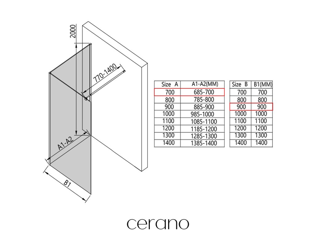 V rámci tejto série ponúkame širokú škálu rozmerov, aby sme uspokojili rôzne potreby našich zákazníkov. Všetky sprchové kúty, dvere a zásteny značky Cerano sú plne kompatibilné so sprchovými vaničkami Cerano v rovnakých rozmeroch, čo zaisťuje bezproblémovú inštaláciu a dokonalé zladenie. Sprchovací kút je možné navyše inštalovať flexibilne – buď na zodpovedajúcu sprchovú vaničku, alebo priamo na podlahu podľa vašich preferencií a možností kúpeľne.