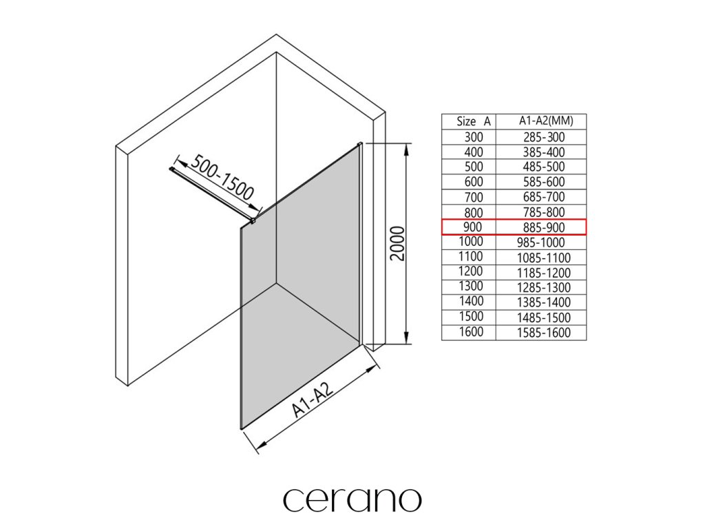 V rámci tejto série ponúkame širokú škálu rozmerov, aby sme uspokojili rôzne potreby našich zákazníkov. Všetky sprchové kúty, dvere a zásteny značky Cerano sú plne kompatibilné so sprchovými vaničkami Cerano v rovnakých rozmeroch, čo zaisťuje bezproblémovú inštaláciu a dokonalé zladenie. Sprchovací kút je možné navyše inštalovať flexibilne – buď na zodpovedajúcu sprchovú vaničku, alebo priamo na podlahu podľa vašich preferencií a možností kúpeľne.