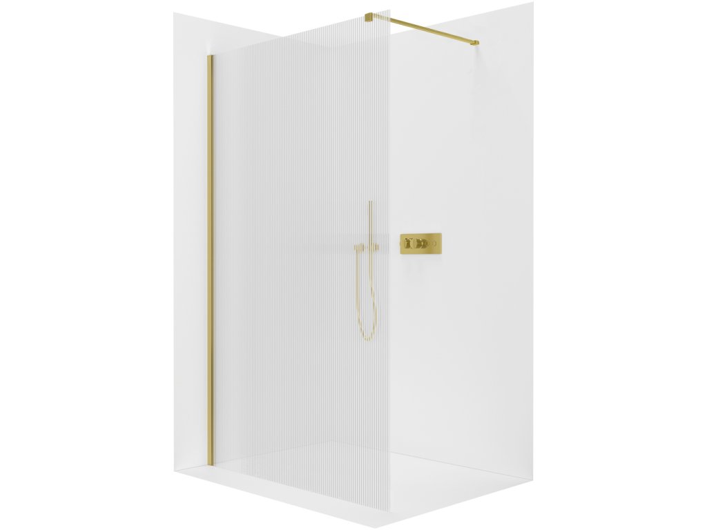 CERANO - Sprchová zástena Walk-in Onyx Cube Ľ/P - 8 mm - hranatá vzpera - zlatá, ryhované sklo - 70x200 cm