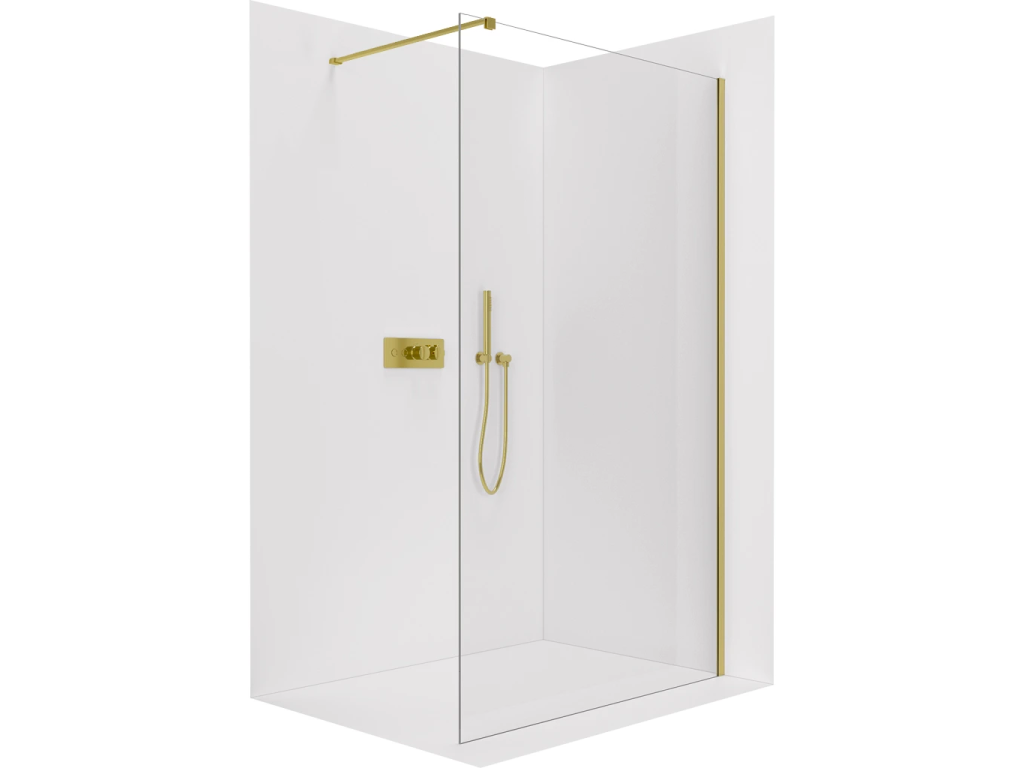 CERANO - Sprchová zástena Walk-in Onyx Cube Ľ/P - 8 mm - hranatá vzpera - zlatá, transparentné sklo - 50x200 cm