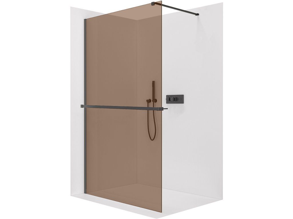 CERANO - Sprchová zástena Walk-in Onyx Cube Ľ/P - 8 mm + polička/držiak na uteráky - hranatá vzpera - čierna matná, bronzové sklo - 120x200 cm
