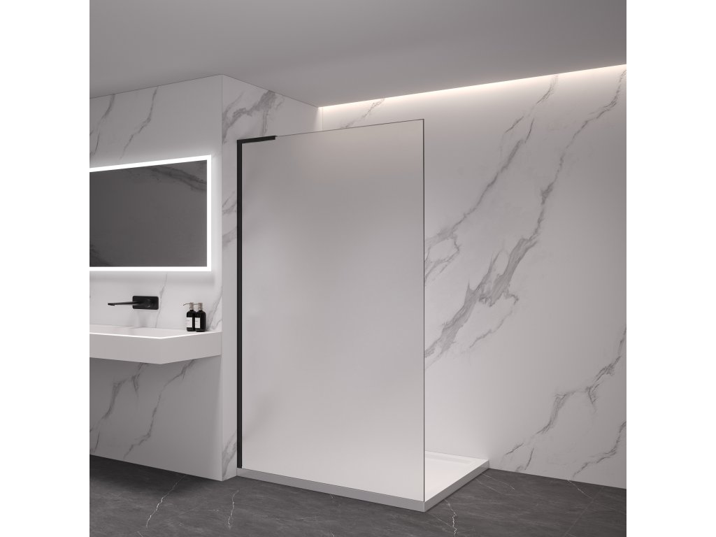 CERANO - Sprchová zástena Walk-in Onyx L-ľavá vzpera - 8 mm - čierna matná, mliečne sklo - 30x200 cm