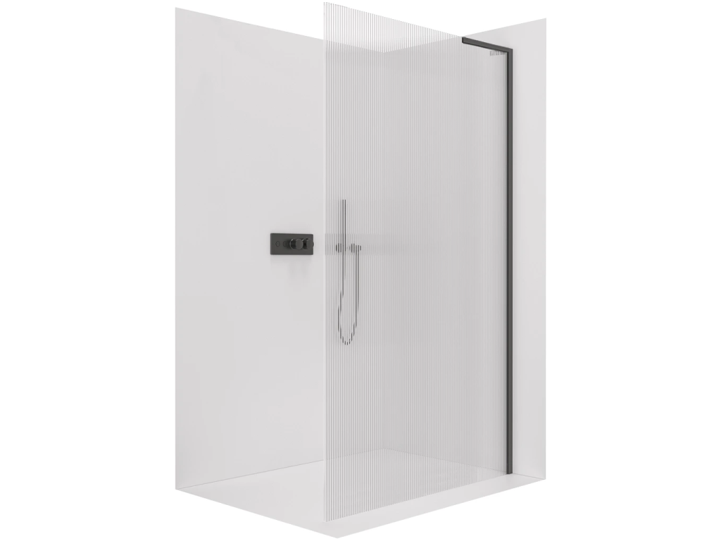 CERANO - Sprchová zástena Walk-in Onyx L-pravá vzpera - 8 mm - čierna matná, ryhované sklo - 150x200 cm