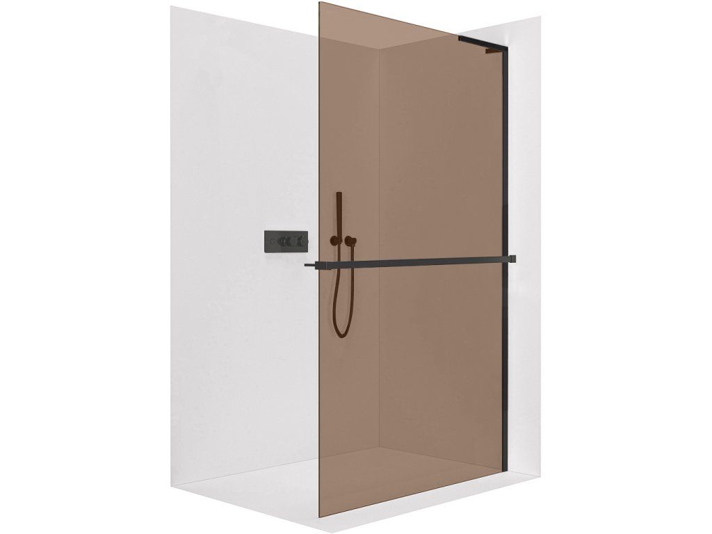 CERANO - Sprchová zástena Walk-in Onyx L-pravá vzpera - 8 mm + polička / držiak na uteráky - čierna matná, bronzové sklo - 110x200 cm