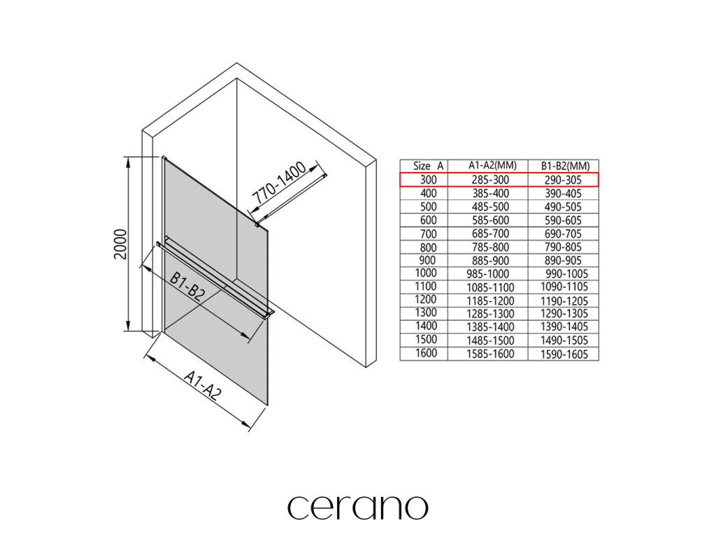 V rámci tejto série ponúkame širokú škálu rozmerov, aby sme uspokojili rôzne potreby našich zákazníkov. Všetky sprchové kúty, dvere a zásteny značky Cerano sú plne kompatibilné so sprchovými vaničkami Cerano v rovnakých rozmeroch, čo zaisťuje bezproblémovú inštaláciu a dokonalé zladenie. Sprchovací kút je možné navyše inštalovať flexibilne – buď na zodpovedajúcu sprchovú vaničku, alebo priamo na podlahu podľa vašich preferencií a možností kúpeľne.