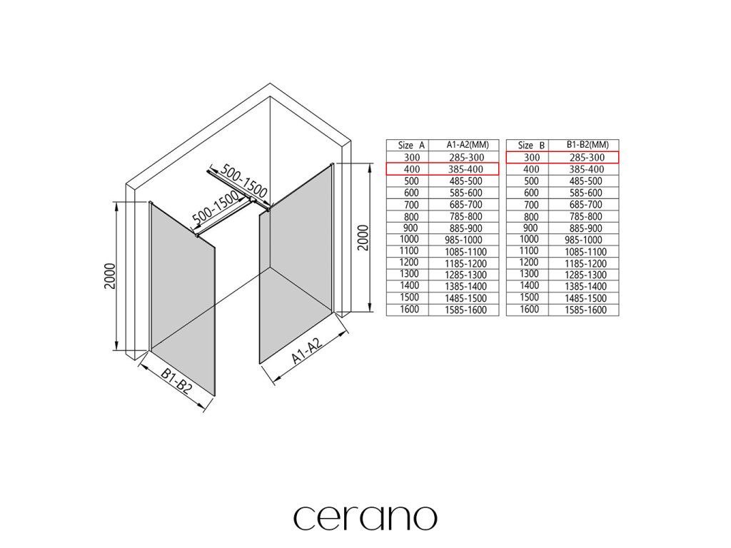 V rámci tejto série ponúkame širokú škálu rozmerov, aby sme uspokojili rôzne potreby našich zákazníkov. Všetky sprchové kúty, dvere a zásteny značky Cerano sú plne kompatibilné so sprchovými vaničkami Cerano v rovnakých rozmeroch, čo zaisťuje bezproblémovú inštaláciu a dokonalé zladenie. Sprchovací kút je možné navyše inštalovať flexibilne – buď na zodpovedajúcu sprchovú vaničku, alebo priamo na podlahu podľa vašich preferencií a možností kúpeľne.