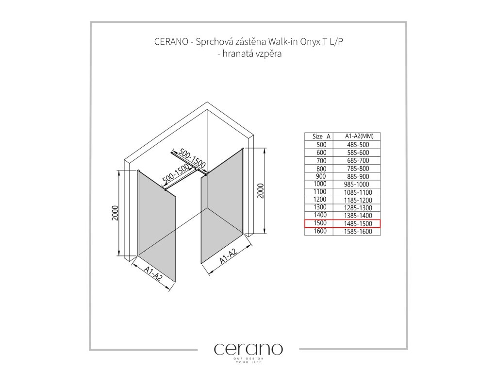 CERANO - Sprchová zástena Walk-in Onyx TL/P - 8 mm - hranatá vzpera - chróm, industriálne sklo - 150x150x200 cm