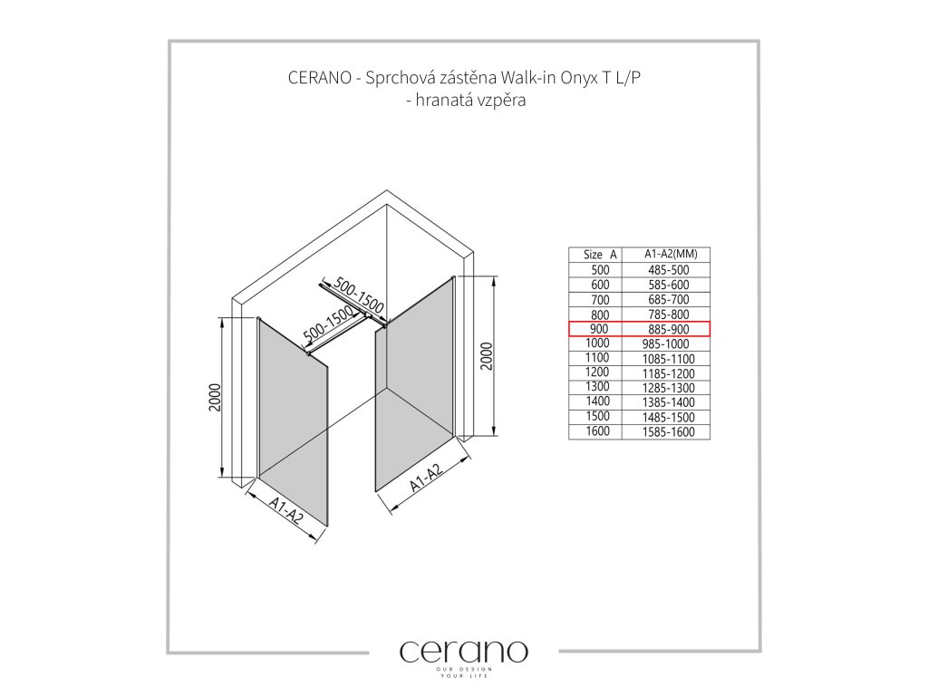 V rámci tejto série ponúkame širokú škálu rozmerov, aby sme uspokojili rôzne potreby našich zákazníkov. Všetky sprchové kúty, dvere a zásteny značky Cerano sú plne kompatibilné so sprchovými vaničkami Cerano v rovnakých rozmeroch, čo zaisťuje bezproblémovú inštaláciu a dokonalé zladenie. Sprchovací kút je možné navyše inštalovať flexibilne – buď na zodpovedajúcu sprchovú vaničku, alebo priamo na podlahu podľa vašich preferencií a možností kúpeľne.