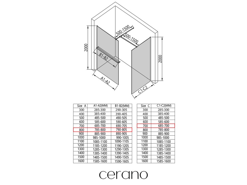 V rámci tejto série ponúkame širokú škálu rozmerov, aby sme uspokojili rôzne potreby našich zákazníkov. Všetky sprchové kúty, dvere a zásteny značky Cerano sú plne kompatibilné so sprchovými vaničkami Cerano v rovnakých rozmeroch, čo zaisťuje bezproblémovú inštaláciu a dokonalé zladenie.