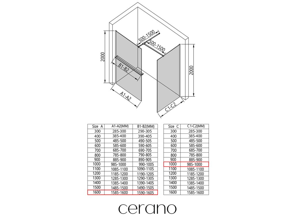 V rámci tejto série ponúkame širokú škálu rozmerov, aby sme uspokojili rôzne potreby našich zákazníkov. Všetky sprchové kúty, dvere a zásteny značky Cerano sú plne kompatibilné so sprchovými vaničkami Cerano v rovnakých rozmeroch, čo zaisťuje bezproblémovú inštaláciu a dokonalé zladenie. Sprchovací kút je možné navyše inštalovať flexibilne – buď na zodpovedajúcu sprchovú vaničku, alebo priamo na podlahu podľa vašich preferencií a možností kúpeľne.
