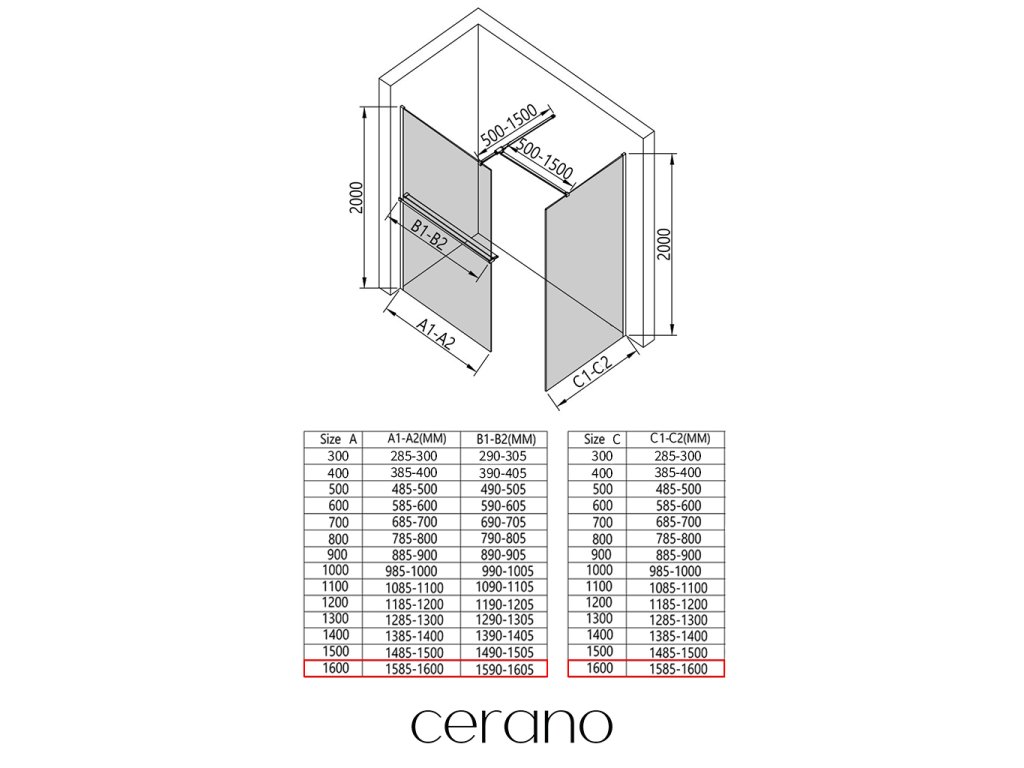 V rámci tejto série ponúkame širokú škálu rozmerov, aby sme uspokojili rôzne potreby našich zákazníkov. Všetky sprchové kúty, dvere a zásteny značky Cerano sú plne kompatibilné so sprchovými vaničkami Cerano v rovnakých rozmeroch, čo zaisťuje bezproblémovú inštaláciu a dokonalé zladenie. Sprchovací kút je možné navyše inštalovať flexibilne – buď na zodpovedajúcu sprchovú vaničku, alebo priamo na podlahu podľa vašich preferencií a možností kúpeľne.