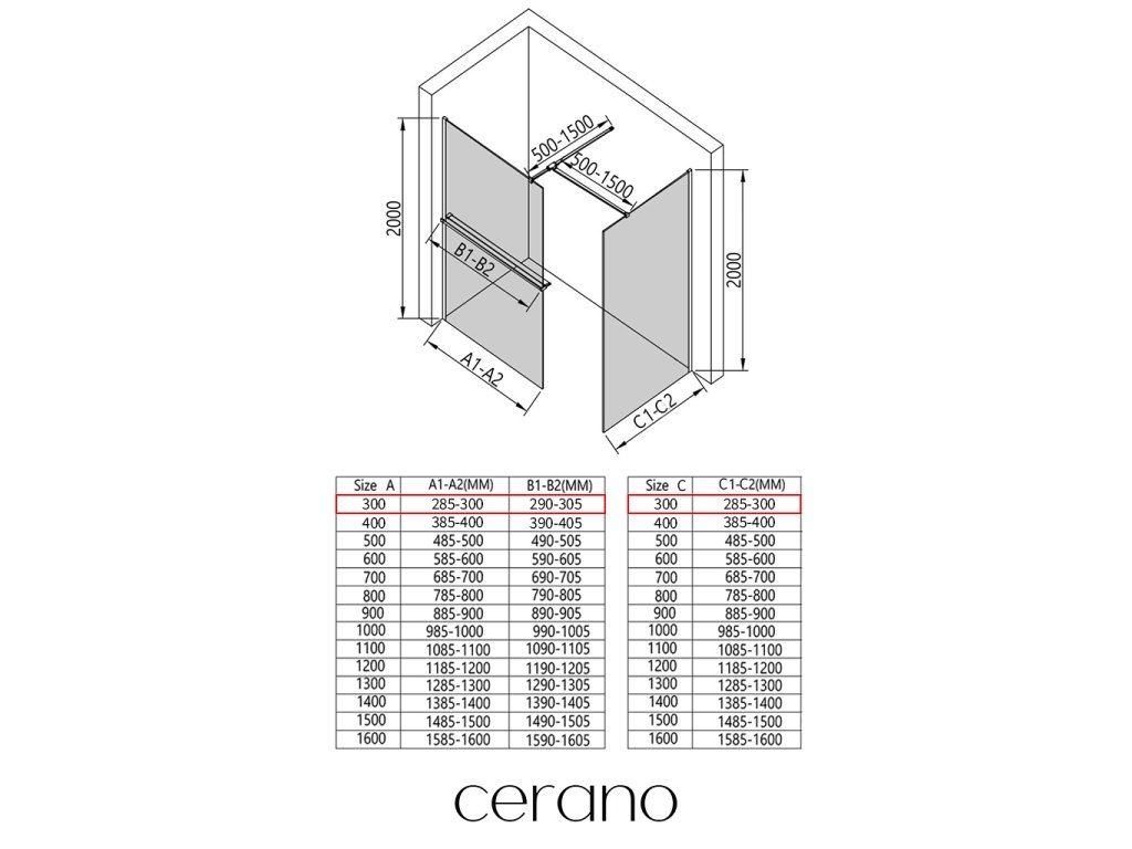 V rámci tejto série ponúkame širokú škálu rozmerov, aby sme uspokojili rôzne potreby našich zákazníkov. Všetky sprchové kúty, dvere a zásteny značky Cerano sú plne kompatibilné so sprchovými vaničkami Cerano v rovnakých rozmeroch, čo zaisťuje bezproblémovú inštaláciu a dokonalé zladenie. Sprchovací kút je možné navyše inštalovať flexibilne – buď na zodpovedajúcu sprchovú vaničku, alebo priamo na podlahu podľa vašich preferencií a možností kúpeľne.