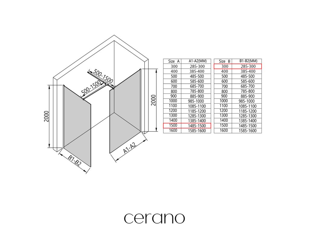 V rámci tejto série ponúkame širokú škálu rozmerov, aby sme uspokojili rôzne potreby našich zákazníkov. Všetky sprchové kúty, dvere a zásteny značky Cerano sú plne kompatibilné so sprchovými vaničkami Cerano v rovnakých rozmeroch, čo zaisťuje bezproblémovú inštaláciu a dokonalé zladenie. Sprchovací kút je možné navyše inštalovať flexibilne – buď na zodpovedajúcu sprchovú vaničku, alebo priamo na podlahu podľa vašich preferencií a možností kúpeľne.