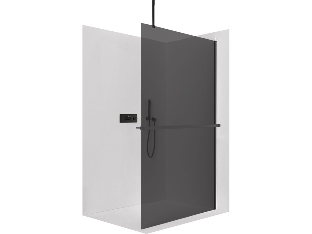CERANO - Sprchová zástena Walk-in Onyx Top Cube Ľ/P - 8 mm - hranatá vzpera + polička/držiak na uteráky - čierna matná, grafitové sklo - 30x200 cm