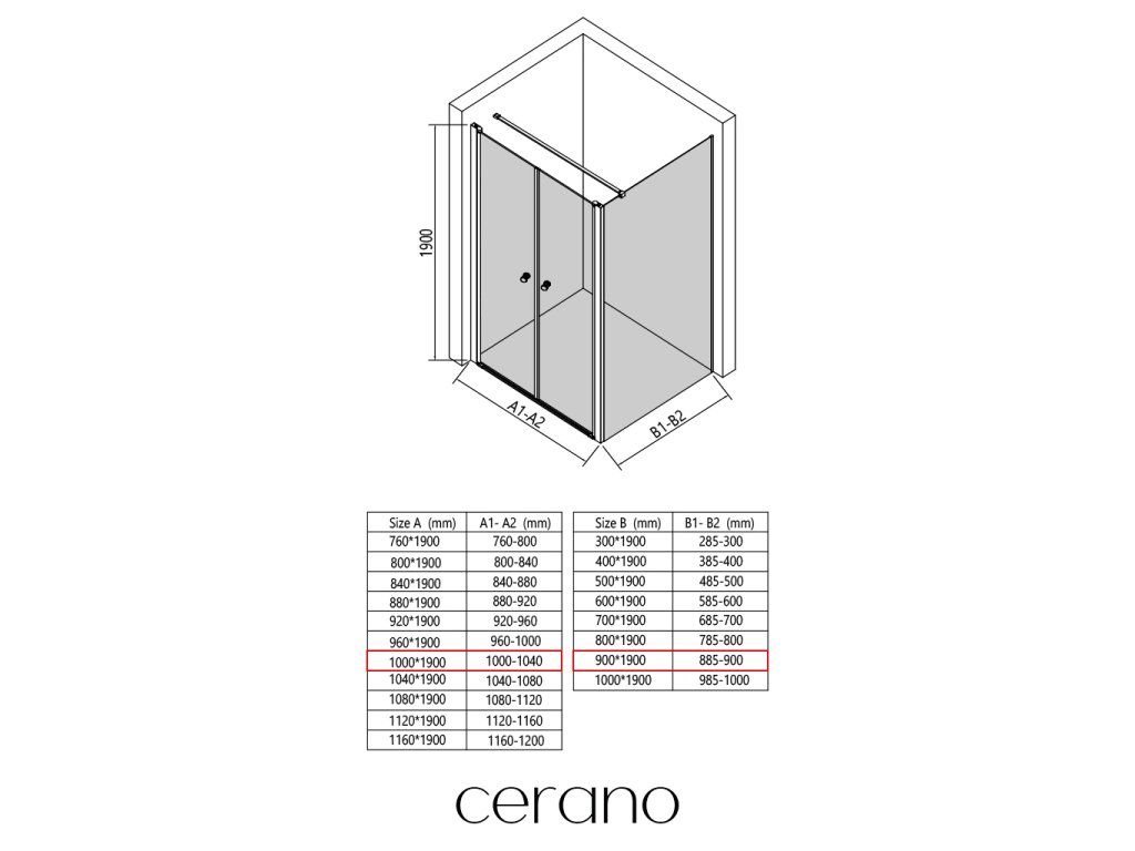 V rámci tejto série ponúkame širokú škálu rozmerov, aby sme uspokojili rôzne potreby našich zákazníkov. Všetky sprchové kúty, dvere a zásteny značky CERANO sú plne kompatibilné so sprchovými vaničkami CERANO v rovnakých rozmeroch, čo zaisťuje bezproblémovú inštaláciu a dokonalé zladenie.