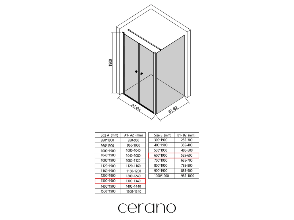 V rámci tejto série ponúkame širokú škálu rozmerov, aby sme uspokojili rôzne potreby našich zákazníkov. Všetky sprchové kúty, dvere a zásteny značky CERANO sú plne kompatibilné so sprchovými vaničkami CERANO v rovnakých rozmeroch, čo zaisťuje bezproblémovú inštaláciu a dokonalé zladenie.