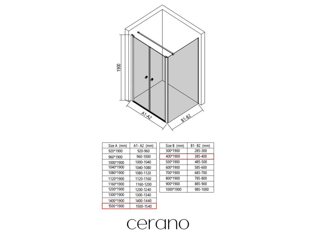 V rámci tejto série ponúkame širokú škálu rozmerov, aby sme uspokojili rôzne potreby našich zákazníkov. Všetky sprchové kúty, dvere a zásteny značky CERANO sú plne kompatibilné so sprchovými vaničkami CERANO v rovnakých rozmeroch, čo zaisťuje bezproblémovú inštaláciu a dokonalé zladenie.