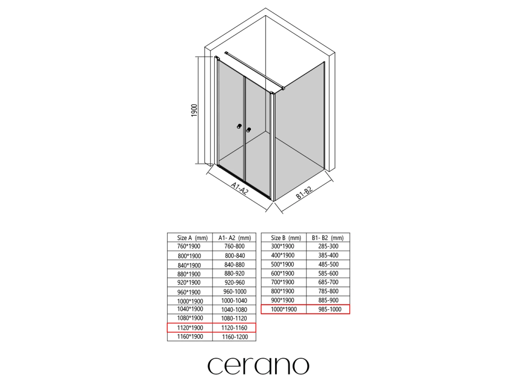 V rámci tejto série ponúkame širokú škálu rozmerov, aby sme uspokojili rôzne potreby našich zákazníkov. Všetky sprchové kúty, dvere a zásteny značky CERANO sú plne kompatibilné so sprchovými vaničkami CERANO v rovnakých rozmeroch, čo zaisťuje bezproblémovú inštaláciu a dokonalé zladenie.