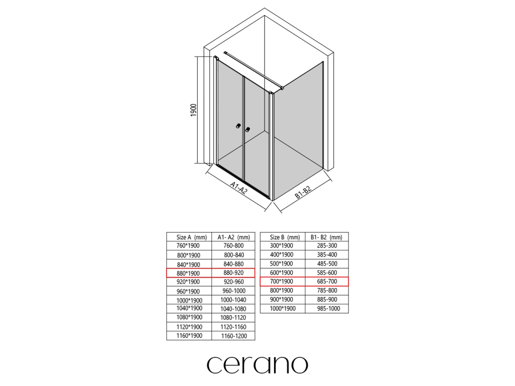 V rámci tejto série ponúkame širokú škálu rozmerov, aby sme uspokojili rôzne potreby našich zákazníkov. Všetky sprchové kúty, dvere a zásteny značky CERANO sú plne kompatibilné so sprchovými vaničkami CERANO v rovnakých rozmeroch, čo zaisťuje bezproblémovú inštaláciu a dokonalé zladenie.