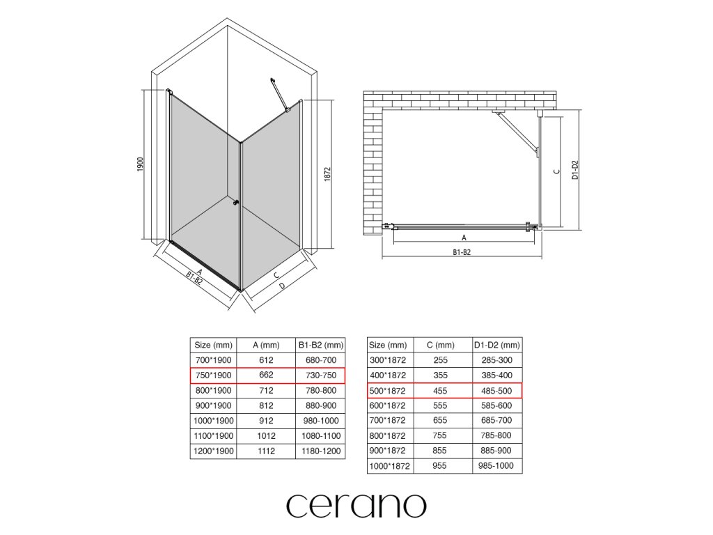 V rámci tejto série ponúkame širokú škálu rozmerov, aby sme uspokojili rôzne potreby našich zákazníkov. Všetky sprchové kúty, dvere a zásteny značky CERANO sú plne kompatibilné so sprchovými vaničkami CERANO v rovnakých rozmeroch, čo zaisťuje bezproblémovú inštaláciu a dokonalé zladenie.