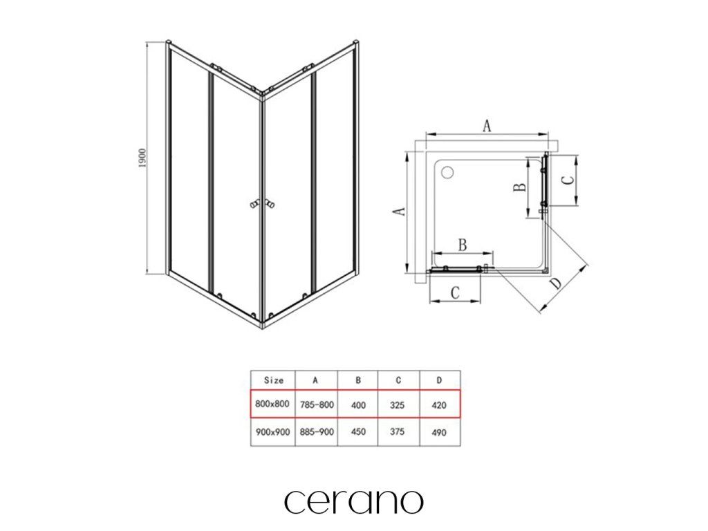 CERANO - Sprchovací kút Fabrizio L/P - 5 mm - čierna matná, transparentné sklo - 80x80x190 cm - posuvný