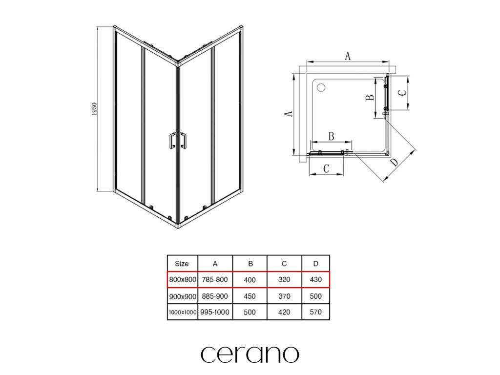 CERANO - Sprchovací kút Fabrizio L/P - 5 mm - čierna matná, transparentné sklo - 80x80x195 cm - posuvný